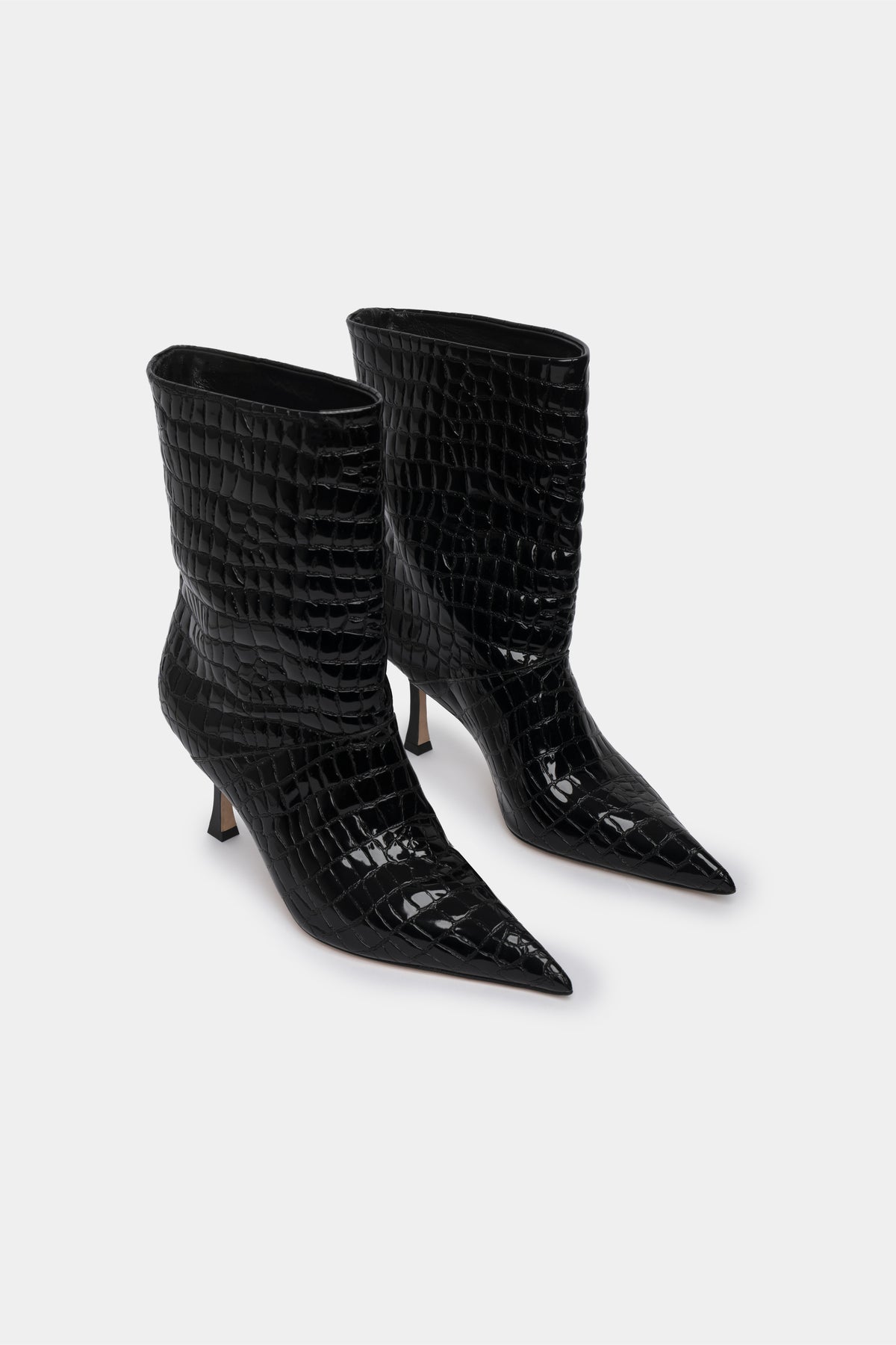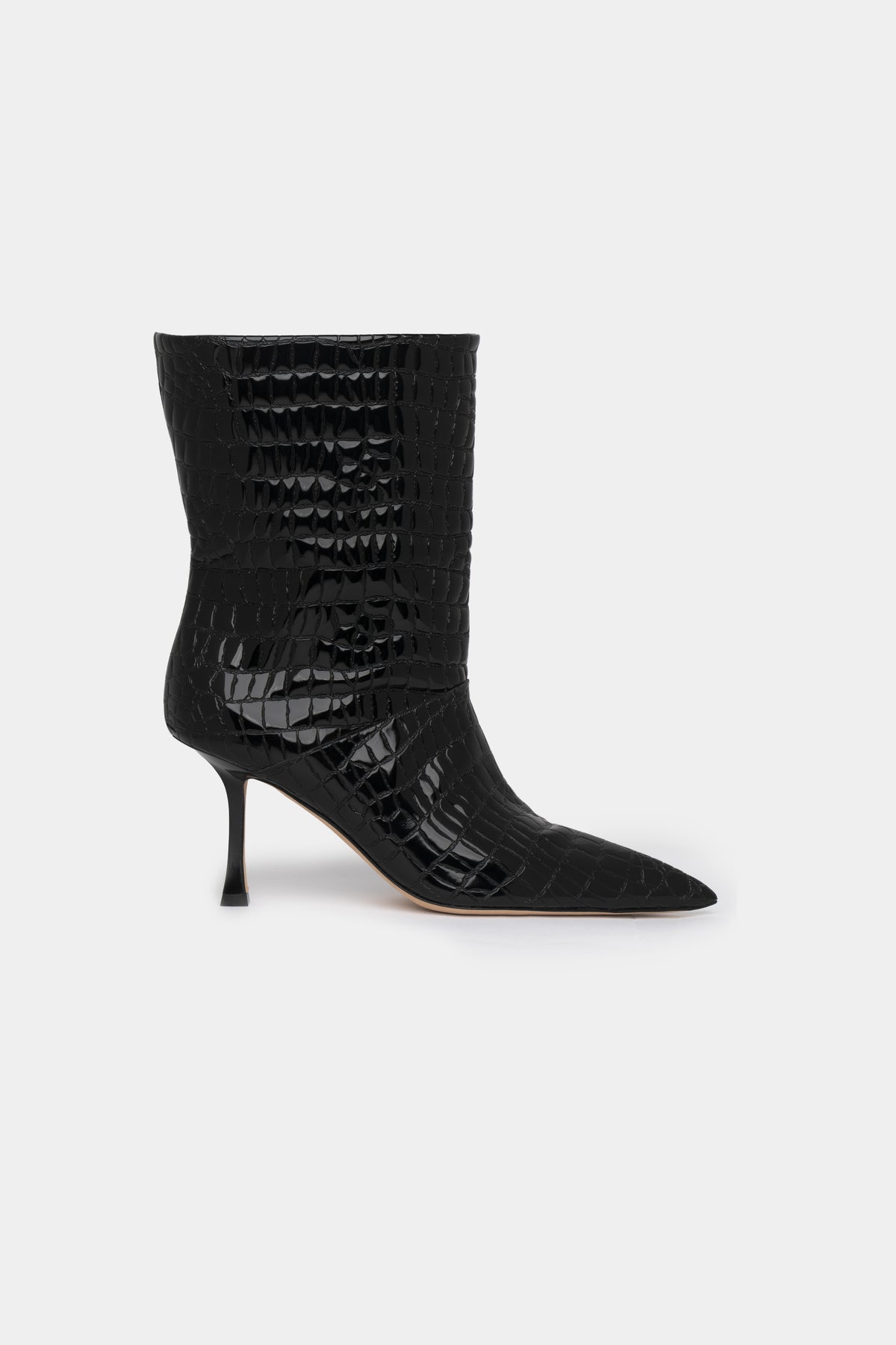 Hong Kong è verticalità pura, tensione continua, energia che non si arresta mai. La silhouette slanciata e la punta appuntita disegnano una figura decisa e dinamica, mentre la texture effetto coccodrillo amplifica il carattere notturno e magnetico del modello.